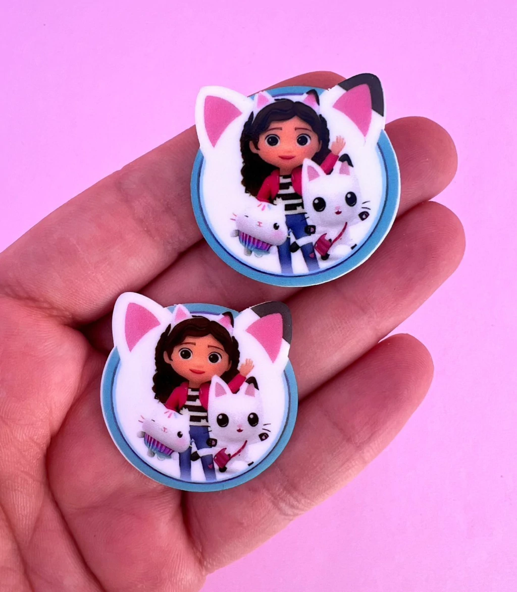 Aplique Acrílico Plano Rostinho Gato turma Gabby (2un)