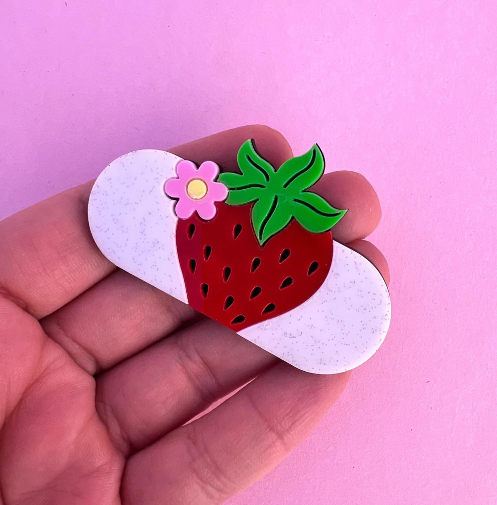 Aplique Base Hair Clip Morango 3D Acrílico (un)