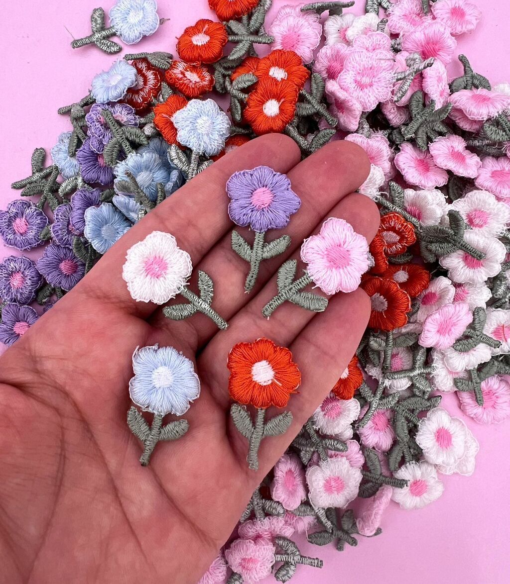 Aplique Bordado Flor com Galho 30mm Cores Sortidas (5un)
