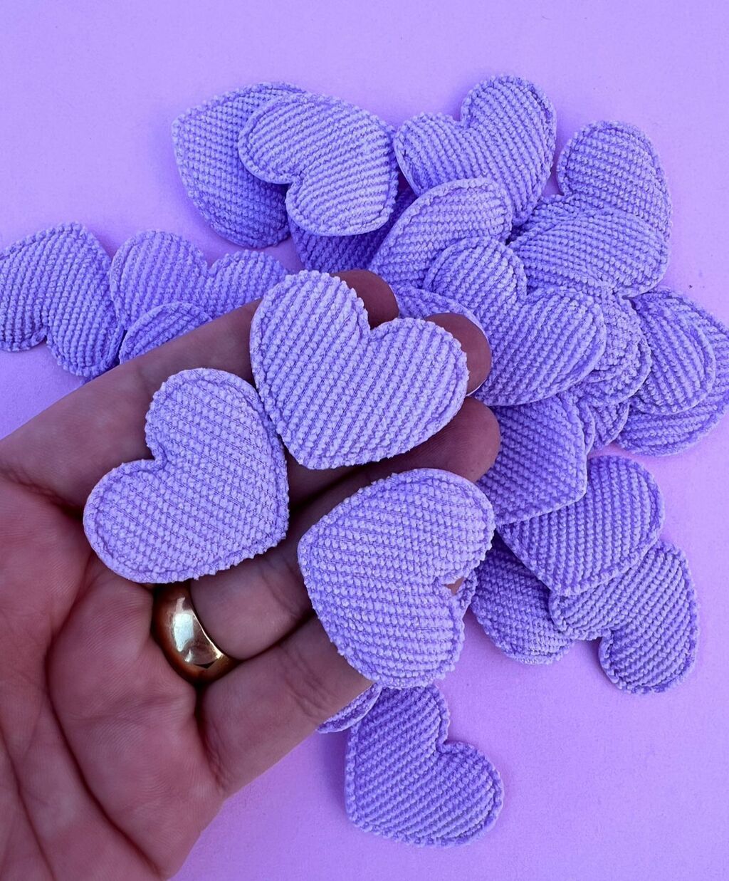 Aplique coração Cotelê Lilás Claro (3un)