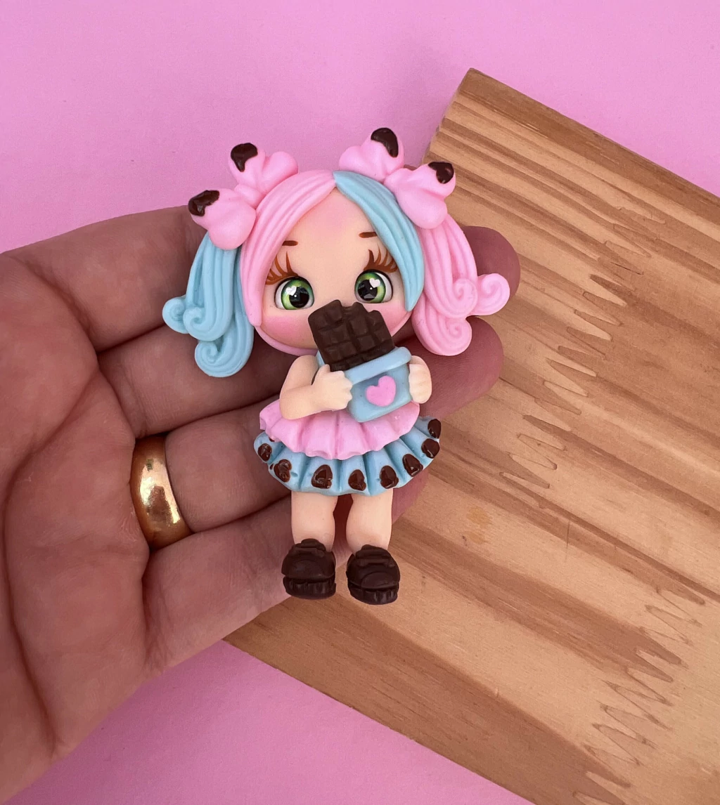 Aplique Menina Docinho azul rosa Chocolate Biscuit (un)