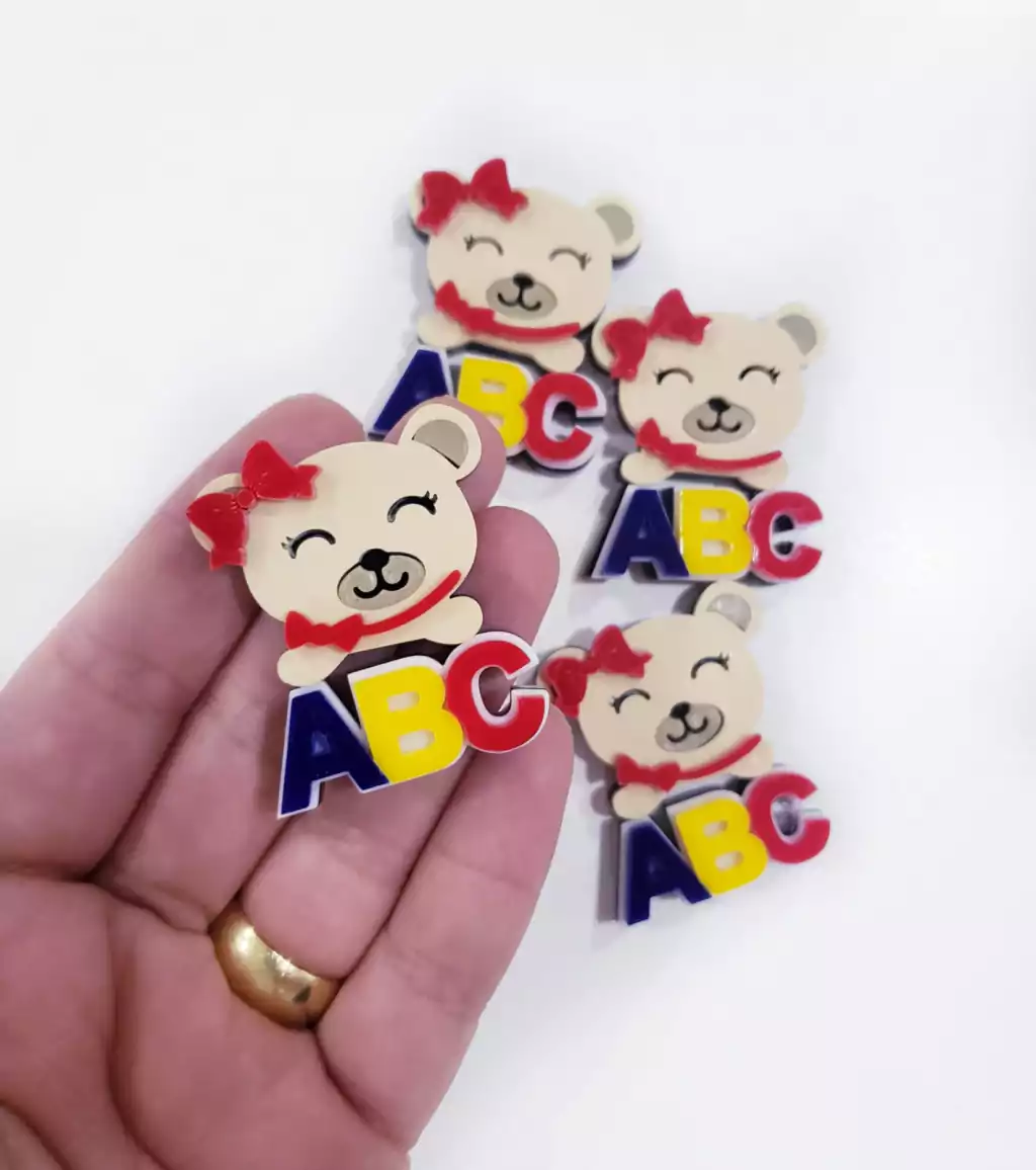 Aplique Urso ABC Lacinho Pescoço Acrílico 4cm (un)