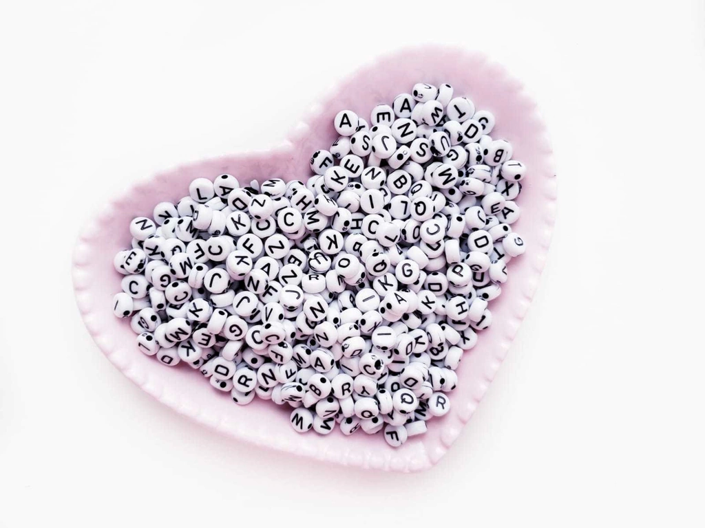 Conta P/ Pulseira Redonda Achatada Branca Letra Sortidas Preta 20g