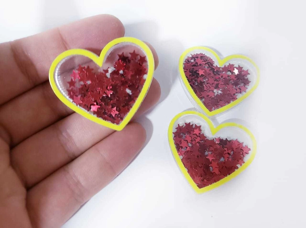 Coração Acrilico Confeti Estrela Vermelha (un) Natal