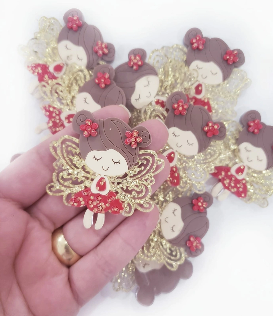 Fadinha Vermelha Asa Dourada Acrílica 5cm
