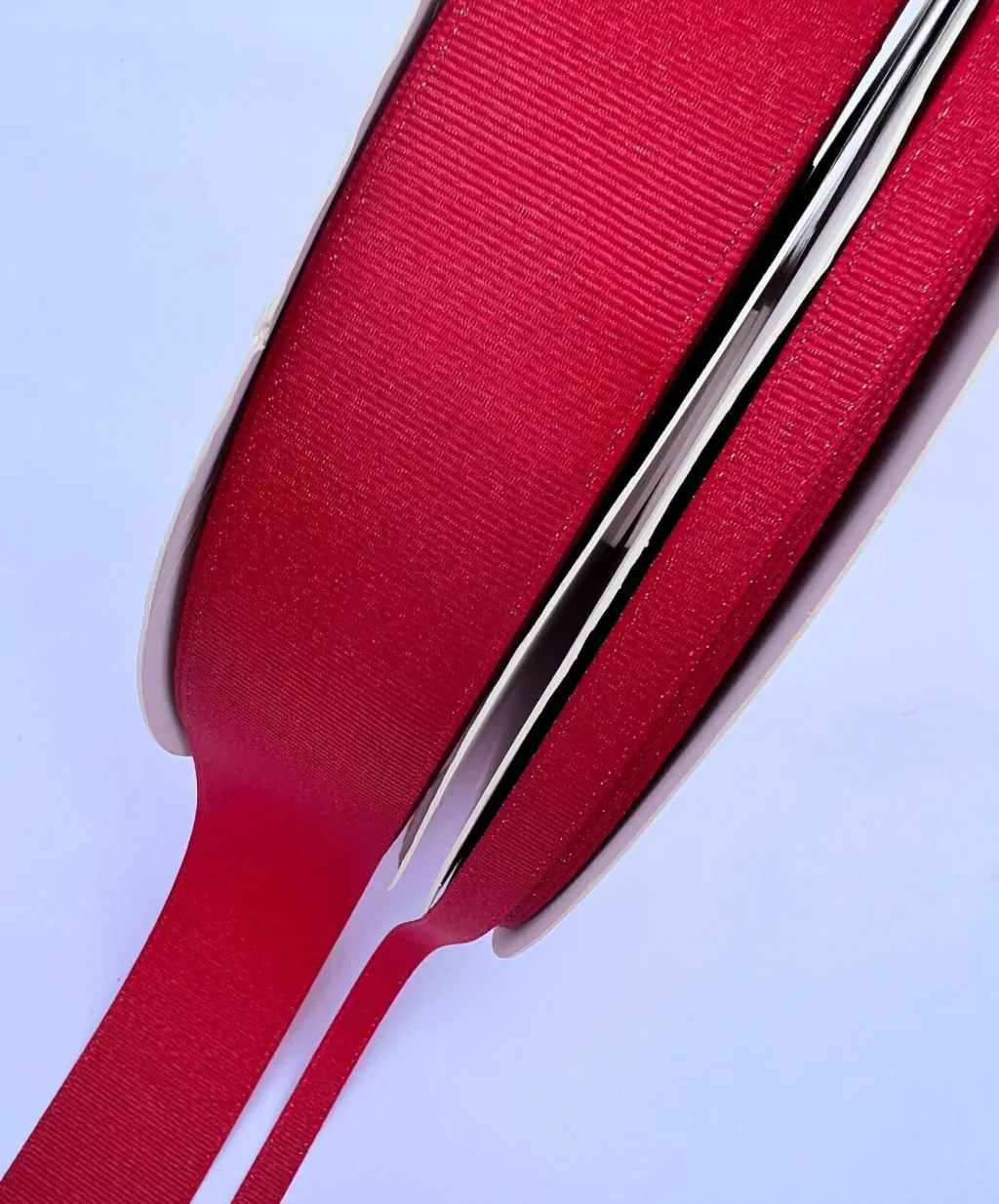 Fita Gorgurão Purl Yama vermelho Fio Dourado