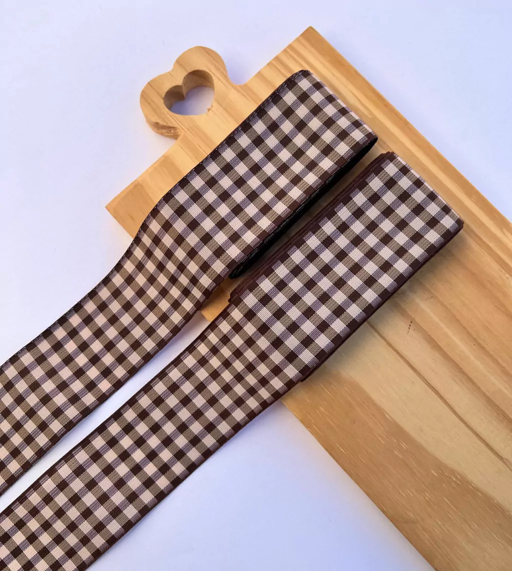 Fita Tecido Polyester Sanding Xadrez Marrom/Creme E1-43 38mm (3 metros)