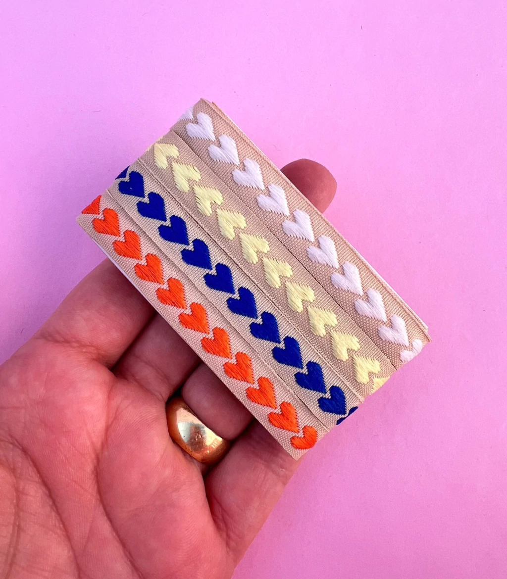 Kit Fita Coração Bordados Cores Escolares 4 cores 10mm (1 metro de cada)