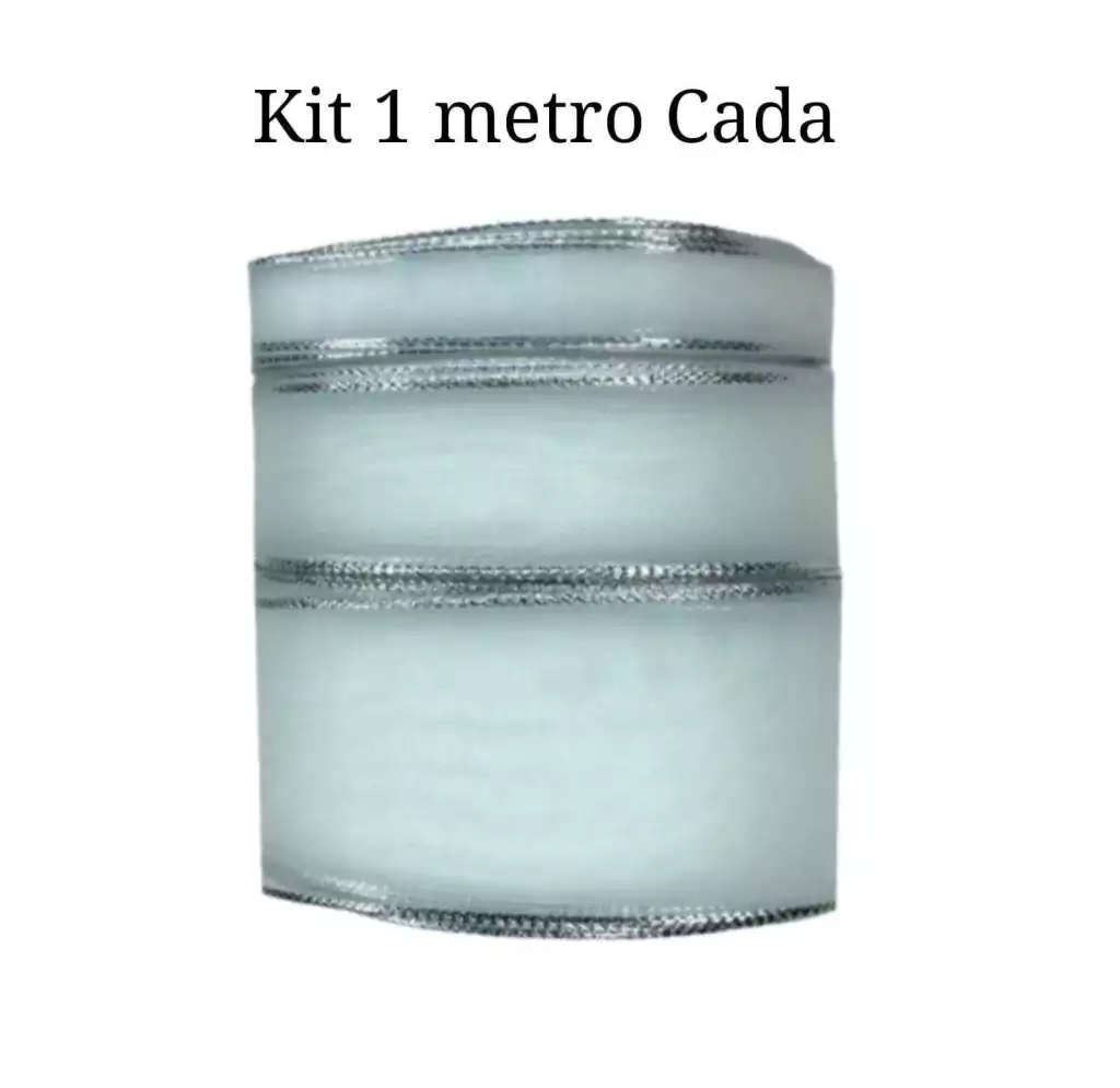 Kit Fita Organza Branca Borda Prata Sinimbu 3 larguras (1 metro de cada)