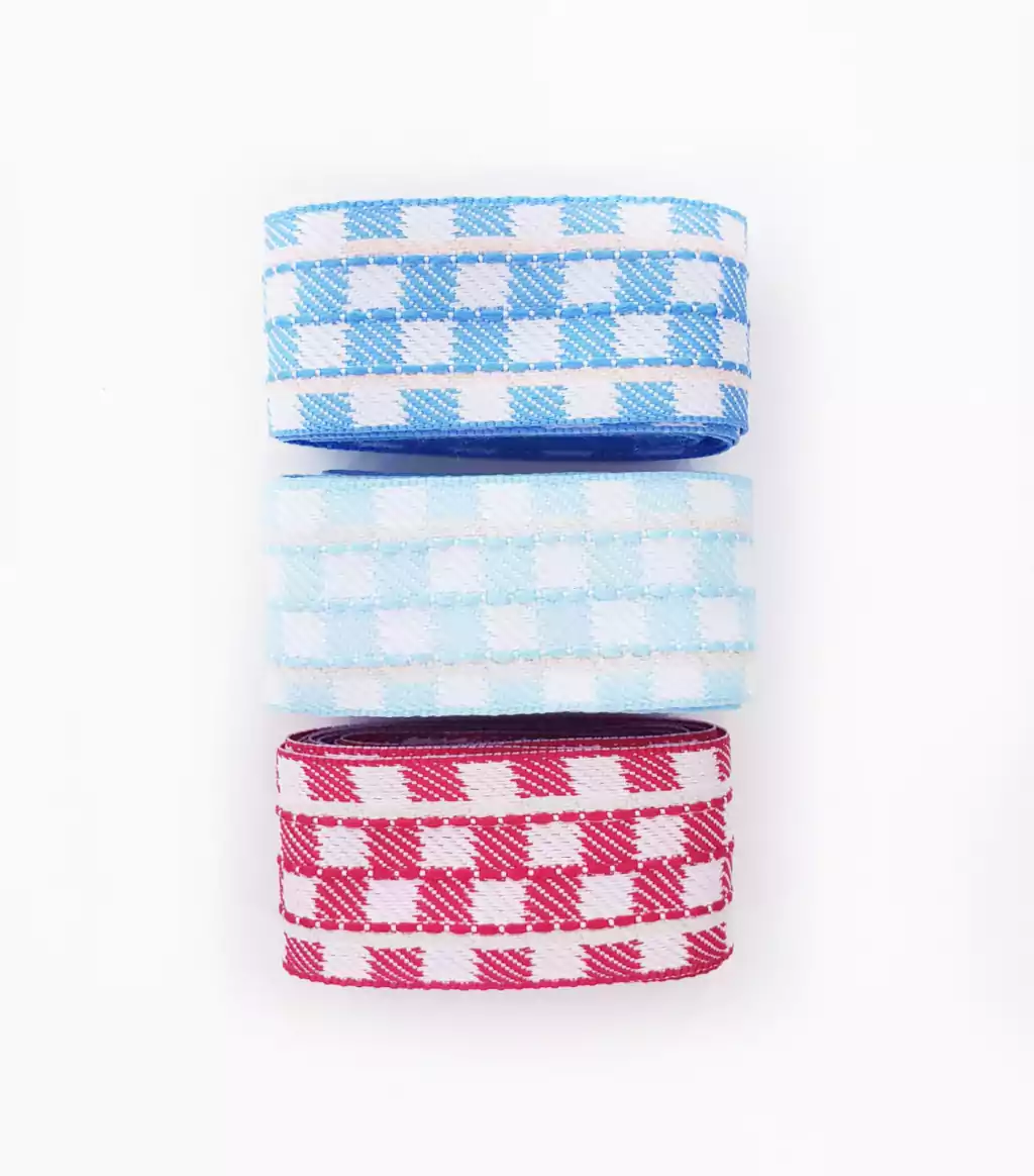 Kit Fita Xadrez Inverno Sinimbu 38mm 3 cores (2 metros de cada) Azul bebê/Azul Turqueza/Vermelho