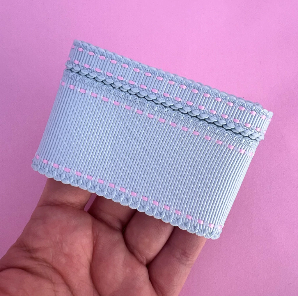 Kit Gorgurão Pesponto Bordinha Trabalhada 2 tamanhos Azul bb Pesponto Rosa (1 mt de cada)