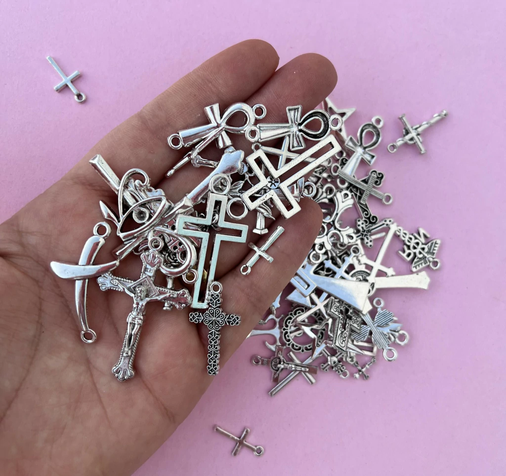 Pingente Cruz Metal Prata mod Diversos (3un)