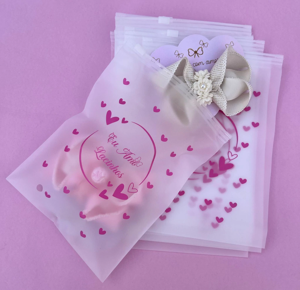 Saquinho Zíper Transparente Eu amo lacinhos 20x15cm (5un)