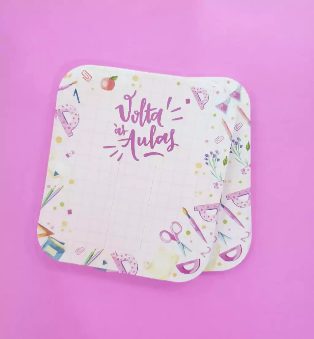 Tag Escolar Rosa Quadrada 9,9x8,7cm Papel 300g Laminado Frente (20un)